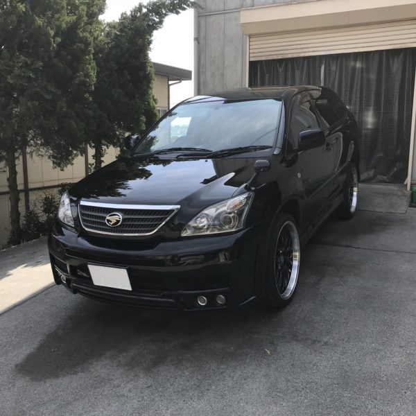 今回は、エアロ、新品22インチアルミホイールを装着したこちらのハリアーを研磨し、