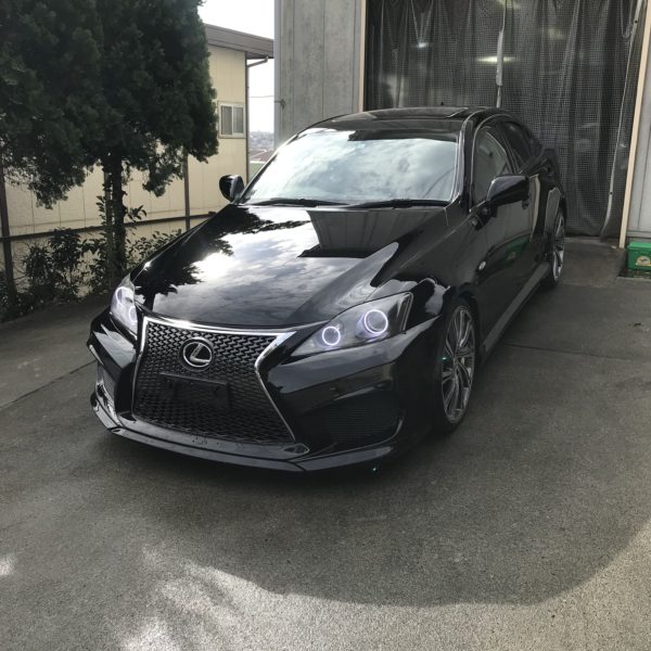 今回は、スピンドルエアロ、新品20インチアルミホイールを装着したこちらのISを研磨し、