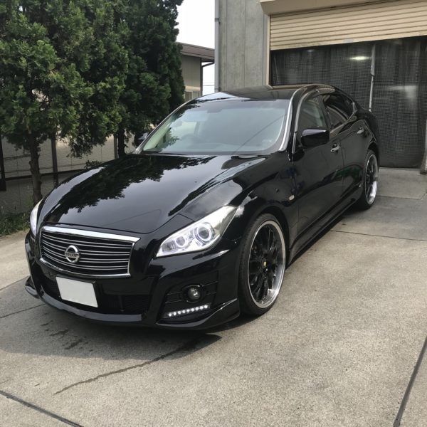 今回はエアロ、新品22インチアルミホイールを装着したこちらのフーガを研磨し、