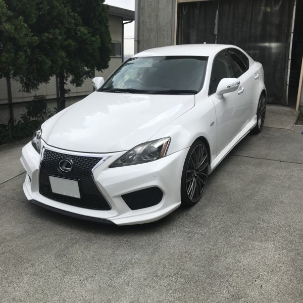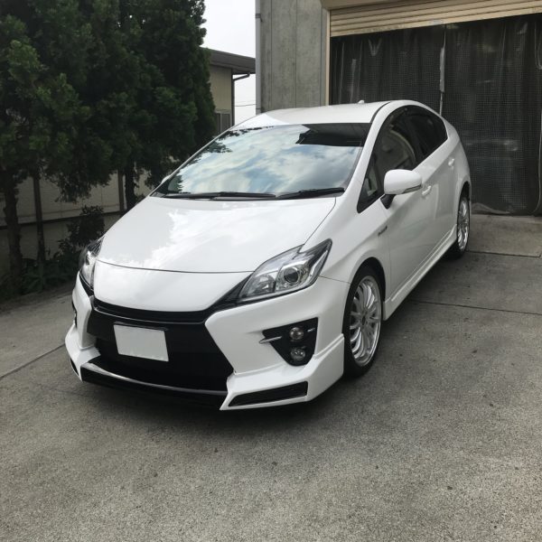今回はエアロ、新品19インチアルミホイールを装着したこちらのプリウスを研磨し、