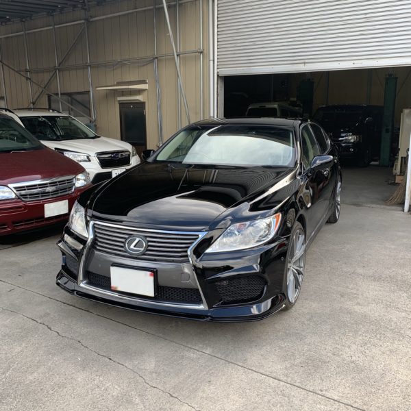 今回はスピンドルエアロ、新品21インチアルミホイールを装着したこちらのLSを研磨し、