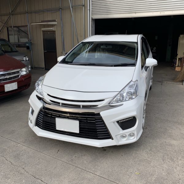 今回はエアロ、新品20インチアルミホイールを装着したこちらのプリウスαを研磨し、