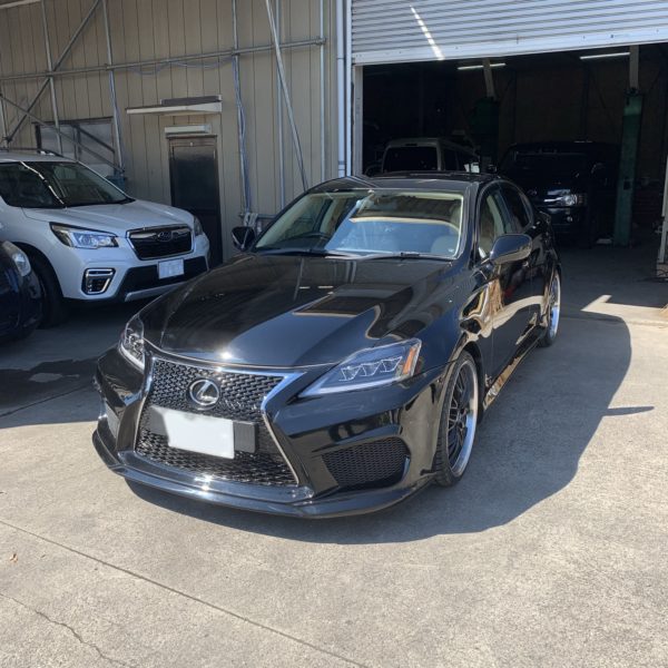 今回はスピンドルエアロ、新品20インチアルミホイールを装着したこちらのISを研磨し、